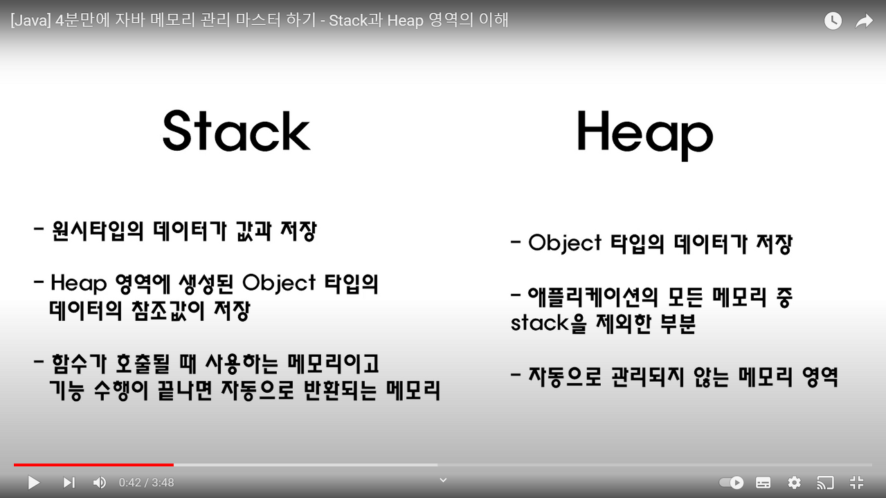 <출처 : 세진개발 채널 [Java] 4분만에 자바 메모리 관리 마스터 하기 - Stack과 Heap 영역의 이해>