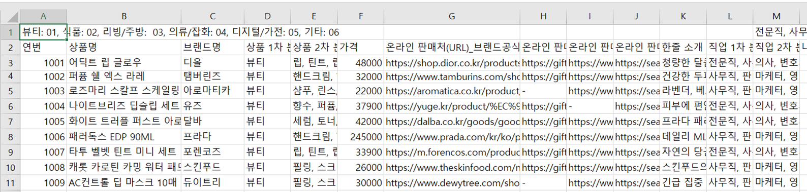 마케팅팀에서 넘겨주신 위와 같은 csv 파일을 받아서