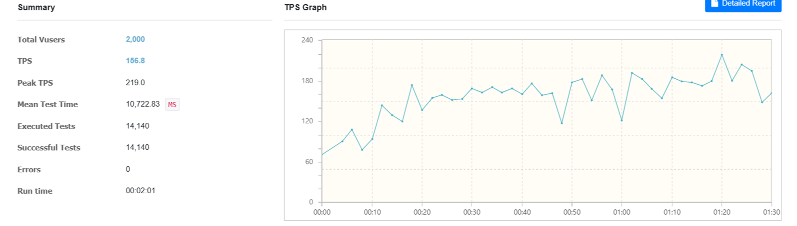 부하가 너무 심하고 테스트 시간 3분도 채가지 못해서 2000 으로 낮추어서 다시 테스트 세팅해주었다.