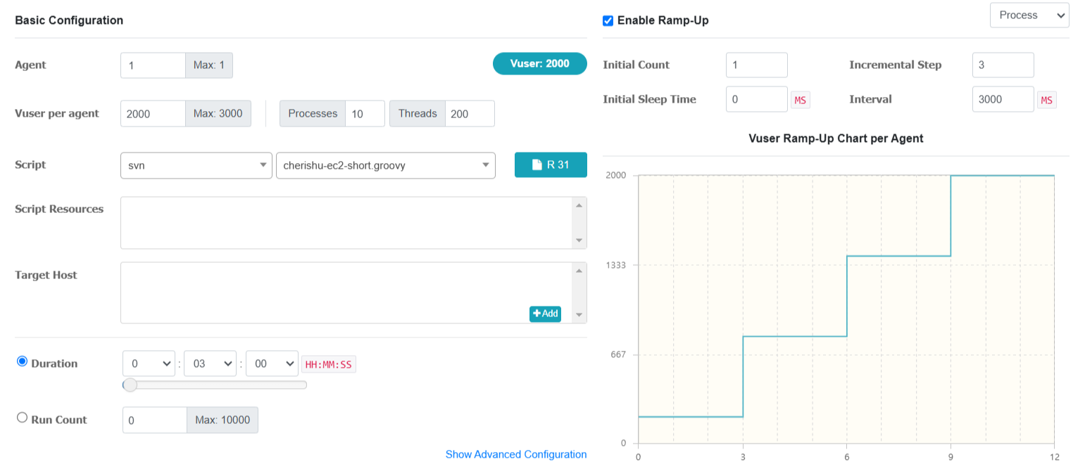 부하를 주기 위한 Enable Ramp-Up 조건을 enable 해주었고