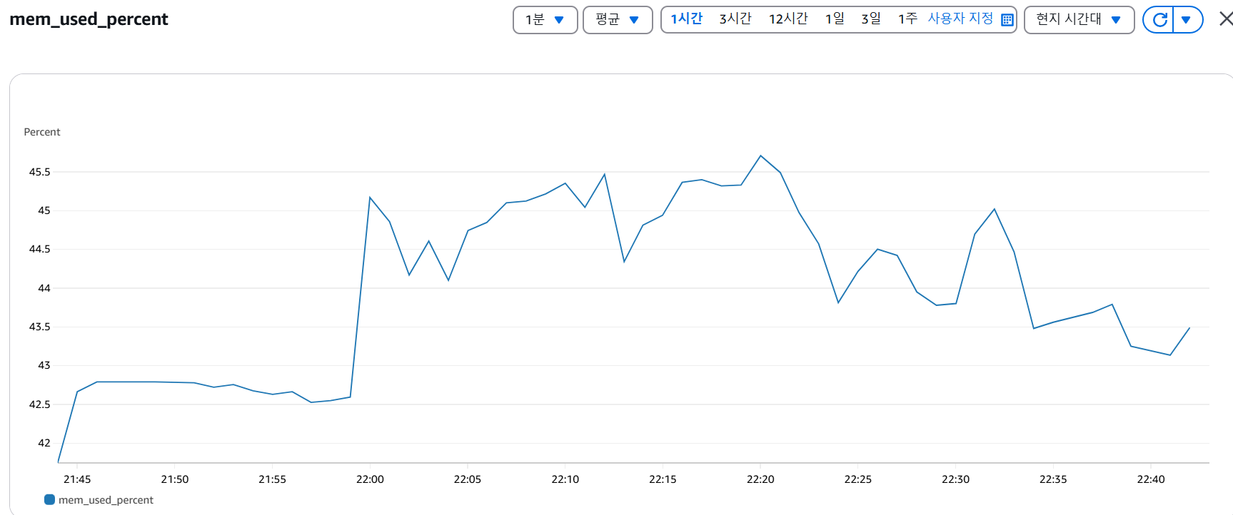 CPU 평균 사용량과 Memory 사용량도 안정적인 추이를 보이고 있습니다.